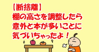 どうもー!コミックバンド闇鍋の丼でございます!! 今日も、またもや断捨離的な話ー!今日は本棚を片づけておりました!この家に引っ越してきて数年たつのですが、今まで何の気なしに使っていた棚の高さをようやく調整したのであります! ...