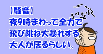 【騒音】夜9時まわって全力で飛び跳ね大暴れする大人が居るらしい。