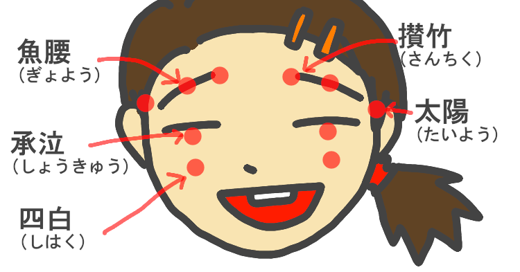 その4で紹介した承泣のもうちょっと下、頬骨の下(淵っこ)の辺りです。