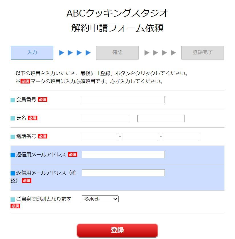 (ABCクッキングスタジオ解約申請依頼フォーム画面より)