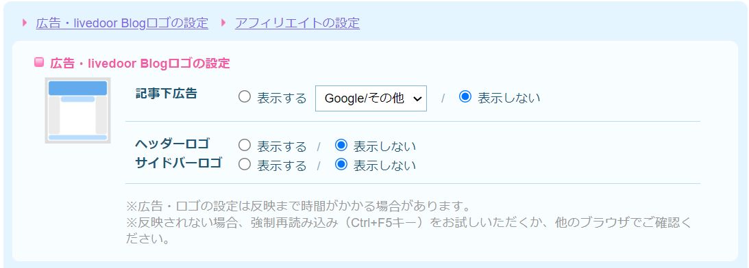 パソコンでライブドアブログの管理画面を開くと、広告表示設定画面とスマホ用レイアウトの広告項目が正しく表示されない!