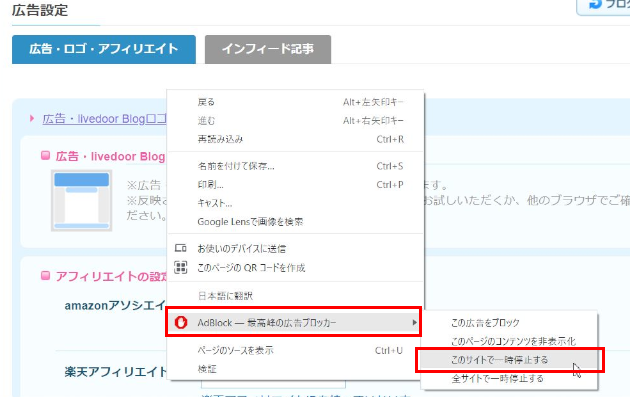 ブラウザ側の広告表示/非表示の設定ですよ!!