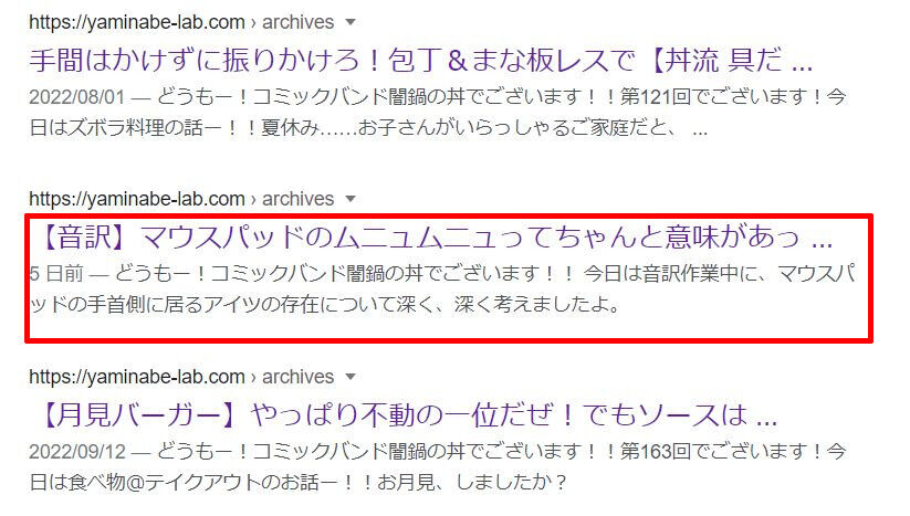 何も設定してないと、この挨拶文が検索結果に出るっていうことですよ!!!!?