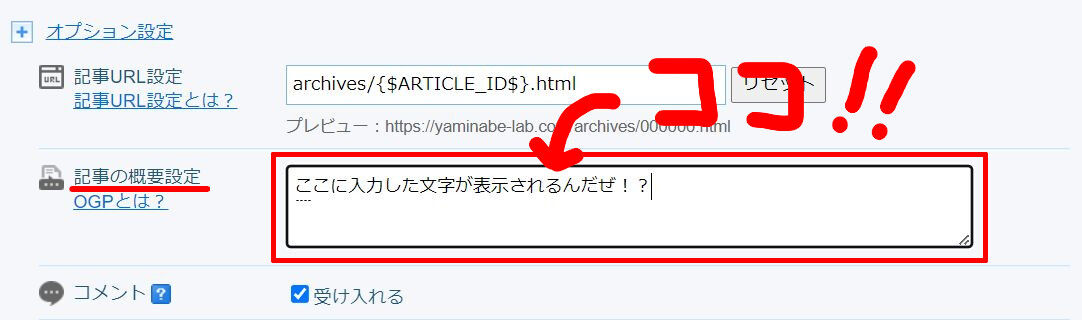[記事の概要設定]という項目があるのが見つかりましたでしょうか!?