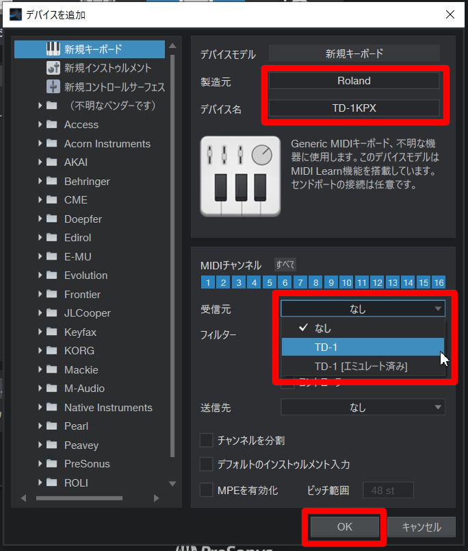 MIDI構成がどうのこうの聞いてくるけどよくわからんので