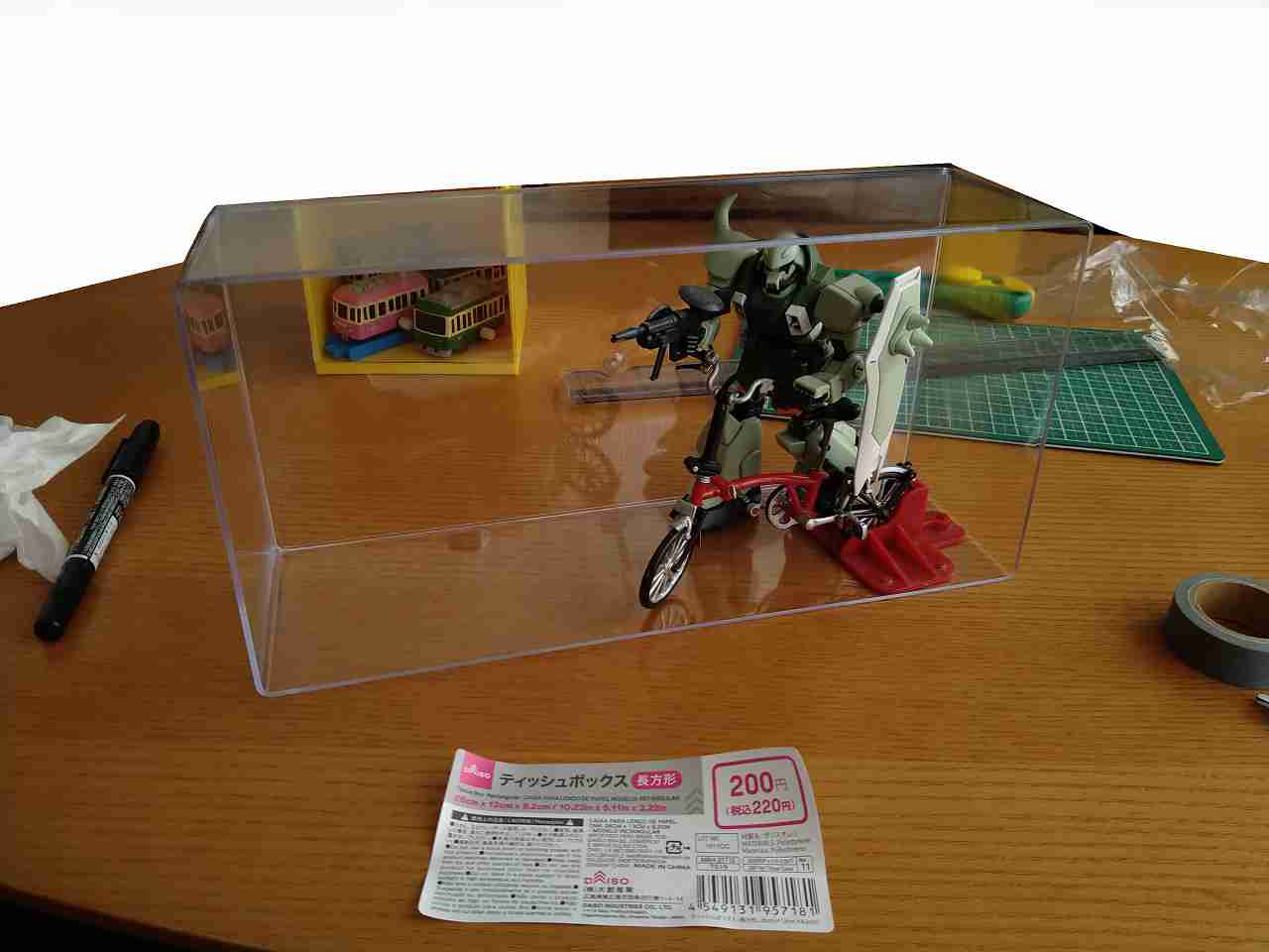 HG 1/144ガンプラ1体、自転車プラモデル1台(?)、