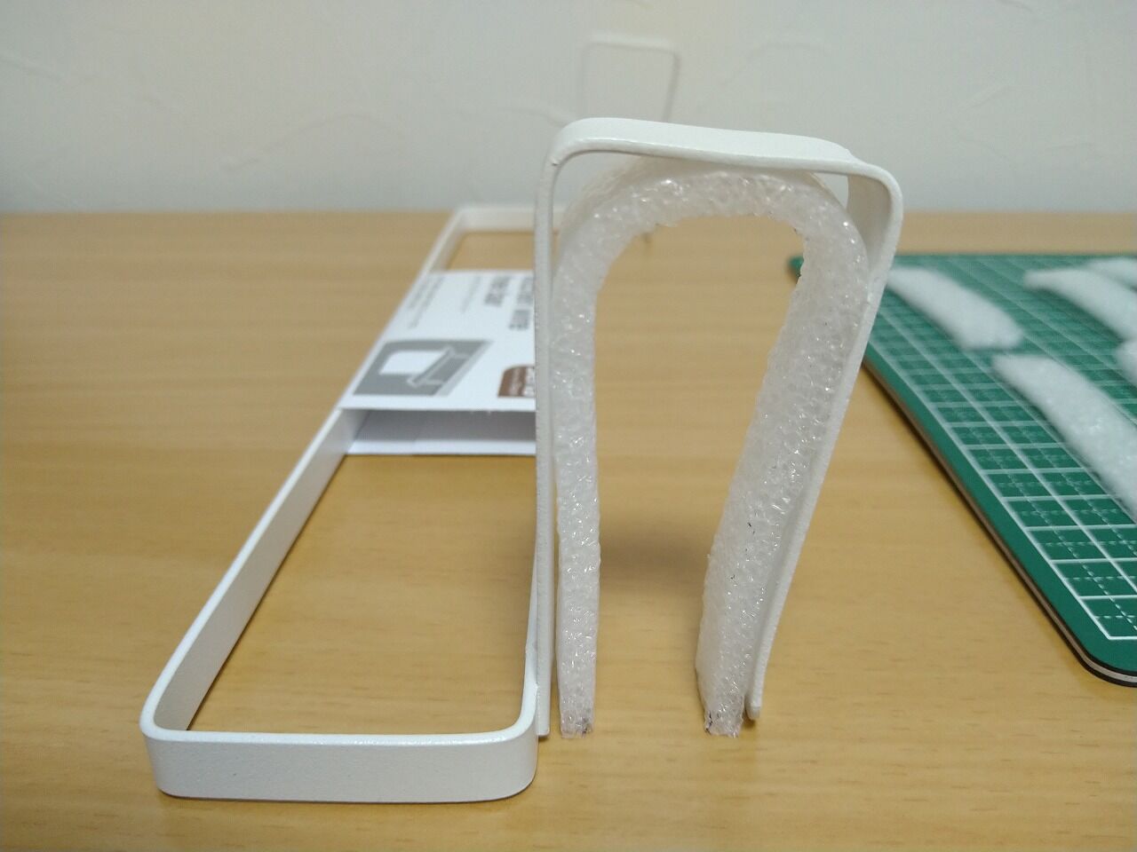 ワイヤーバーと30cm物差しの間の白くて薄いシートを