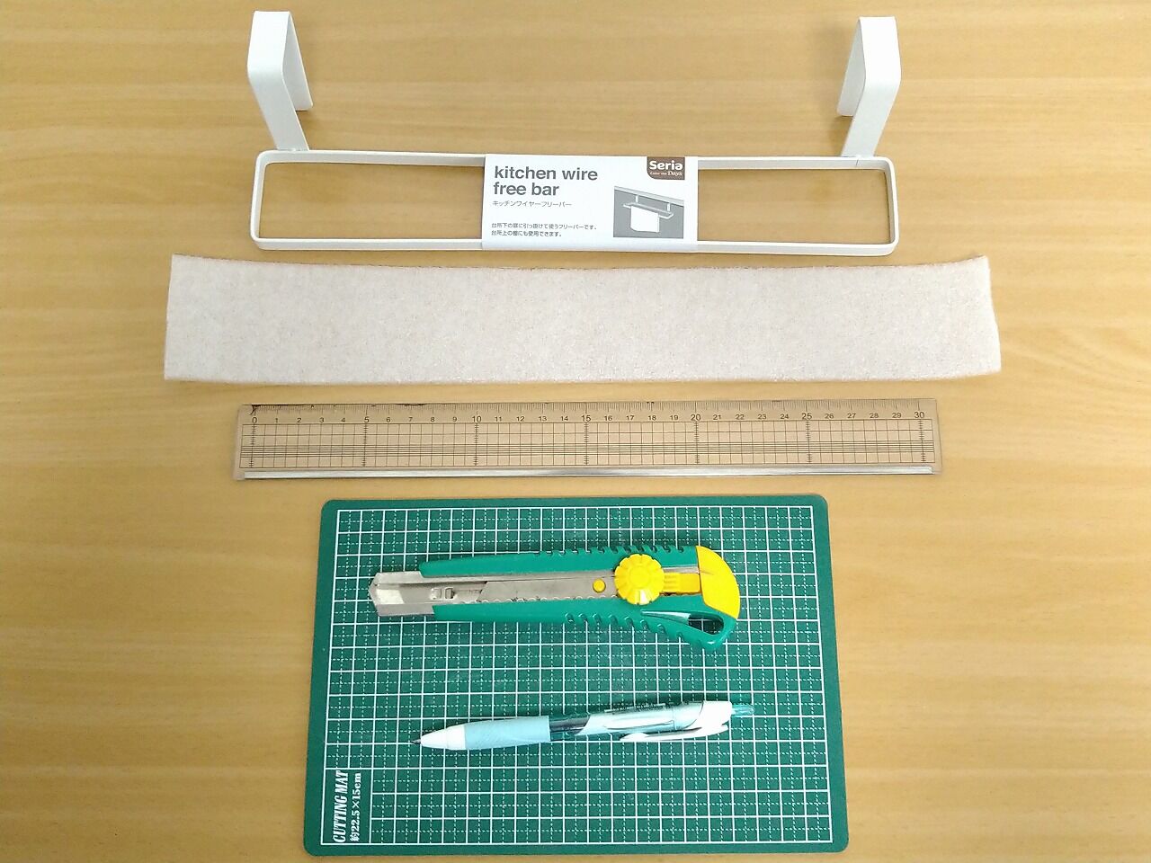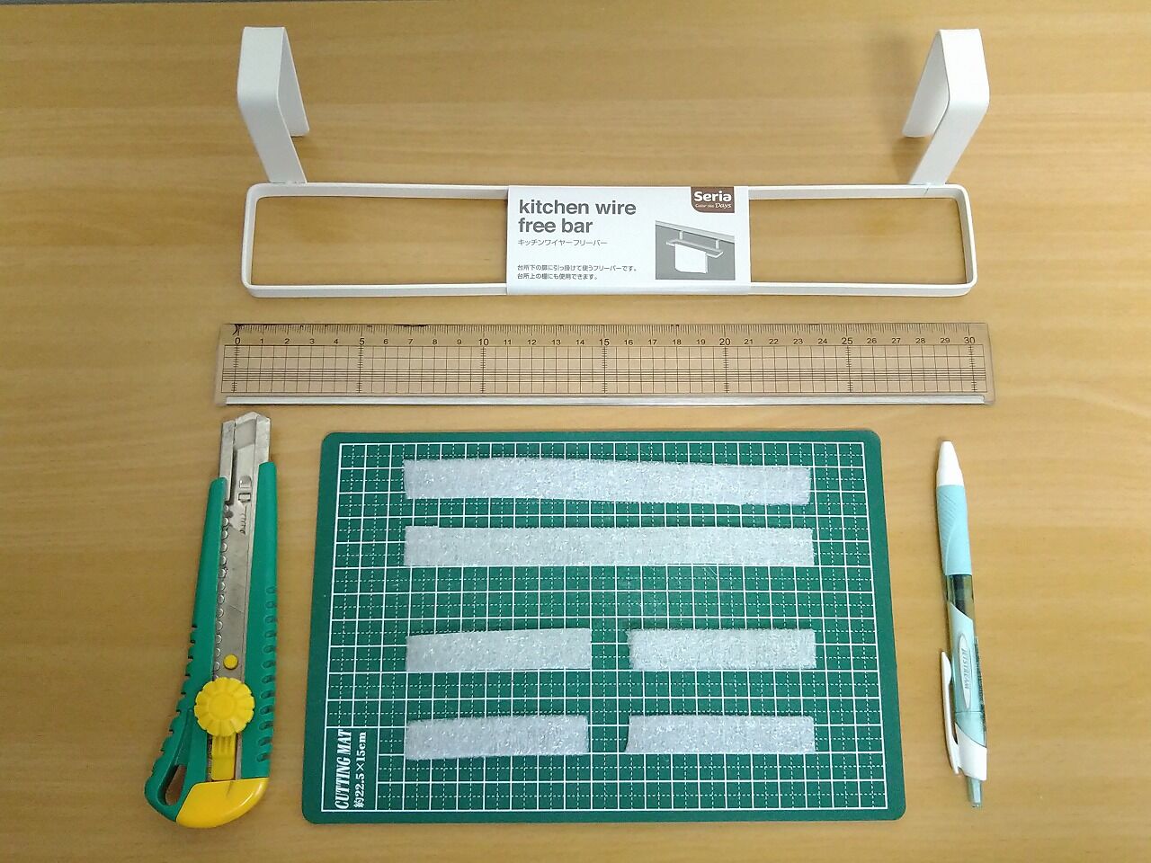 30cm物差し・カッターナイフ・ボールペン・カッターマット、