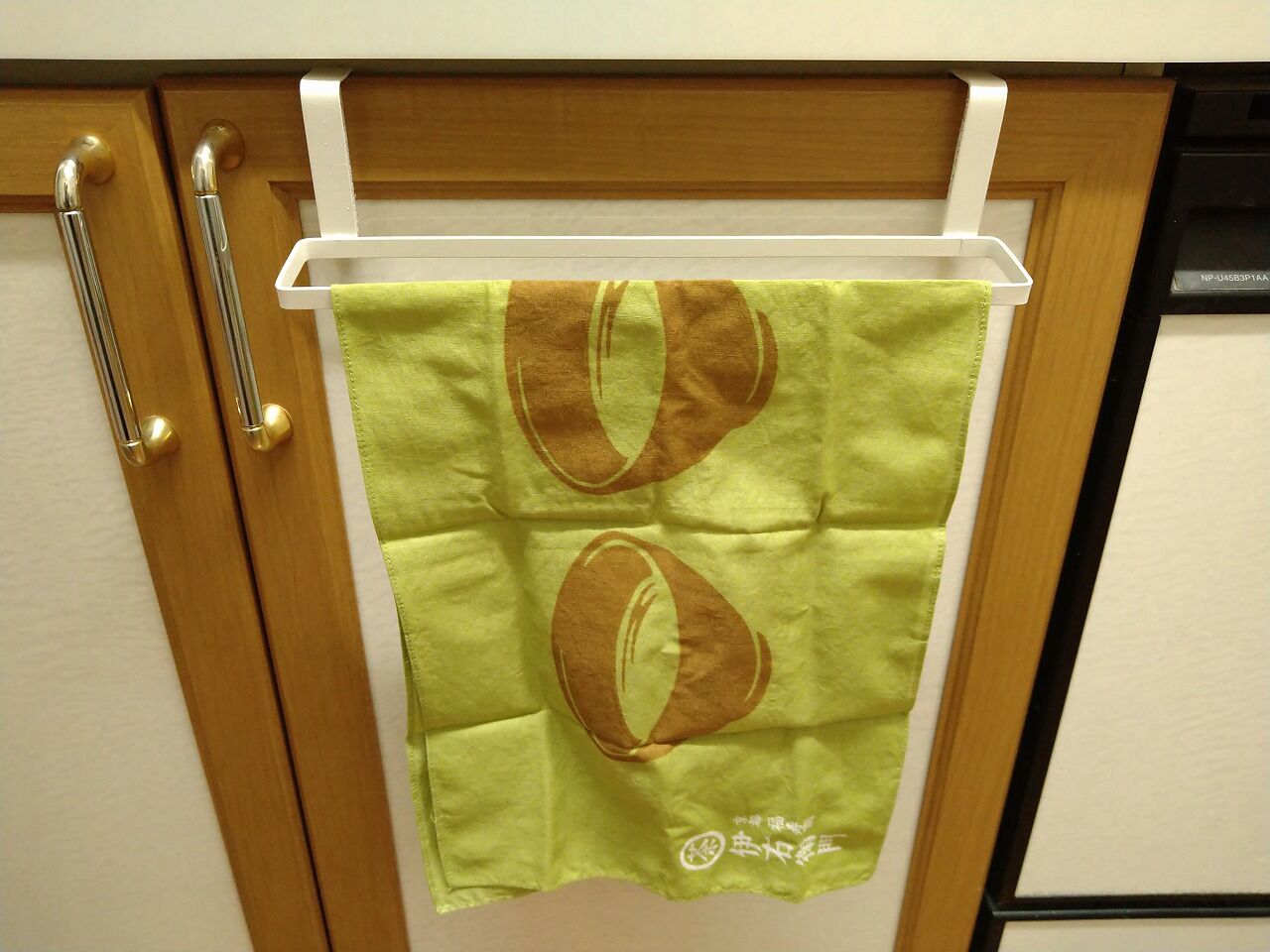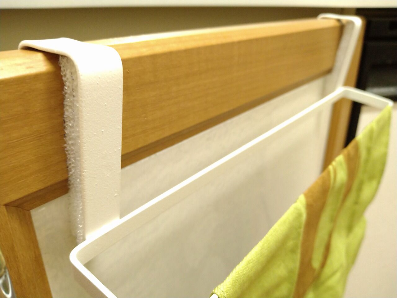 以前の家では磁石タイプの布巾掛けを壁につけていたんですけども、