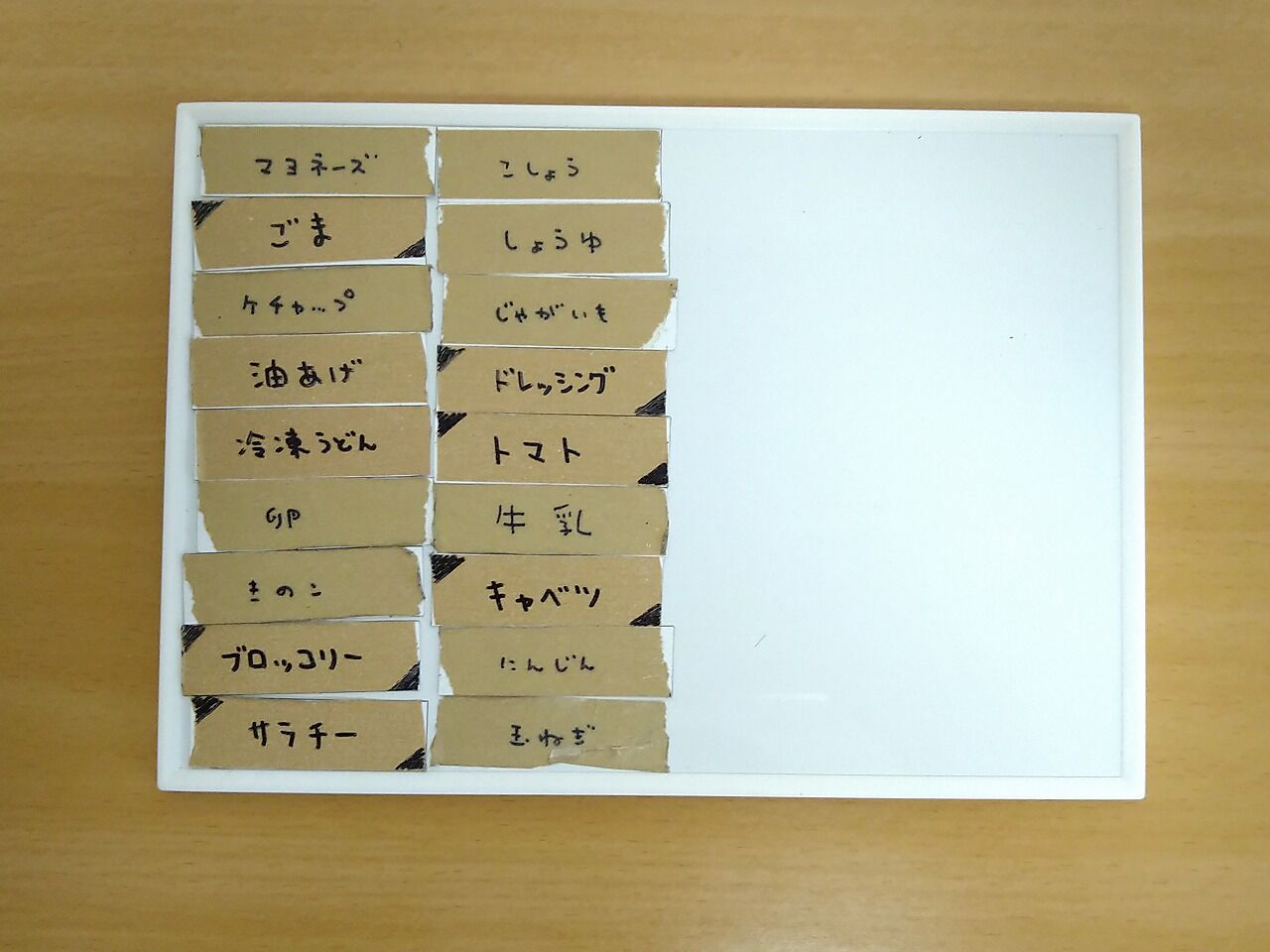 自分は冷蔵庫の側面に設置したホワイトボードを使って