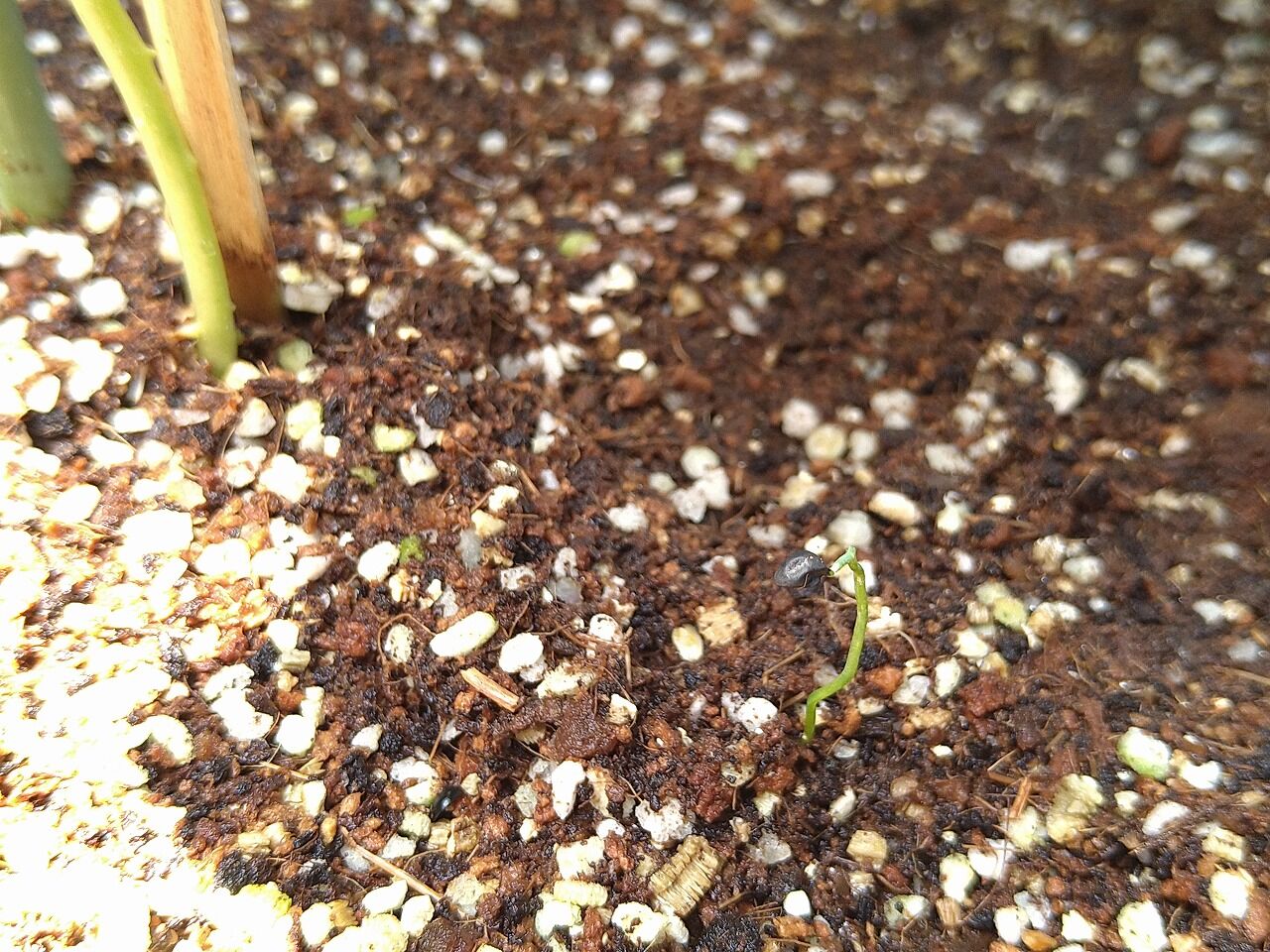 種入りのポットの土を植え替えの際に満遍なく撒いたのでした!!(汗)