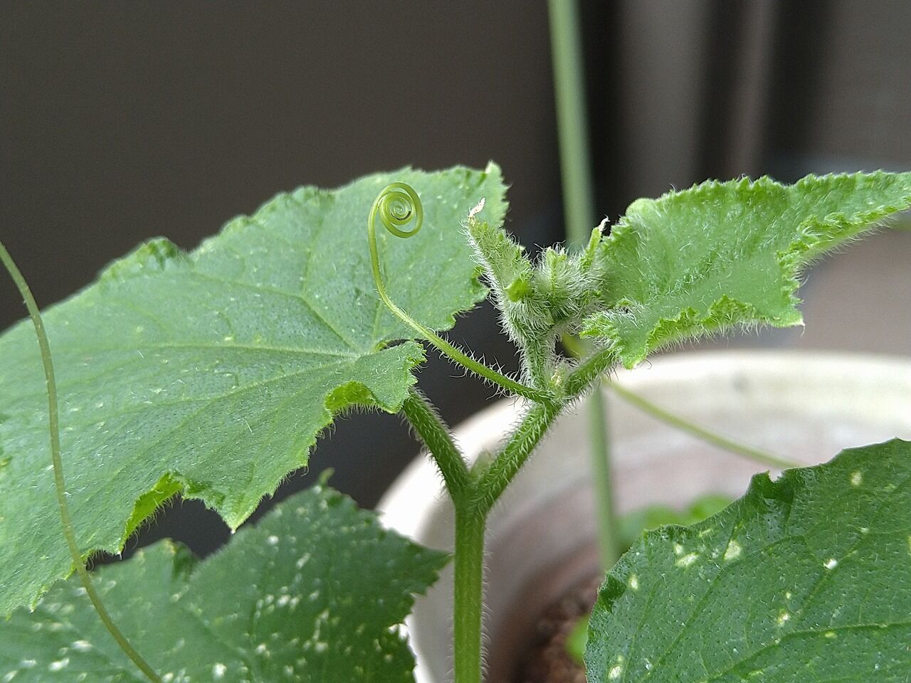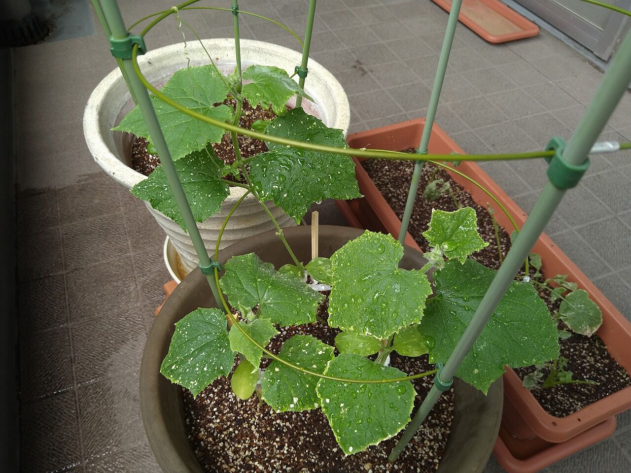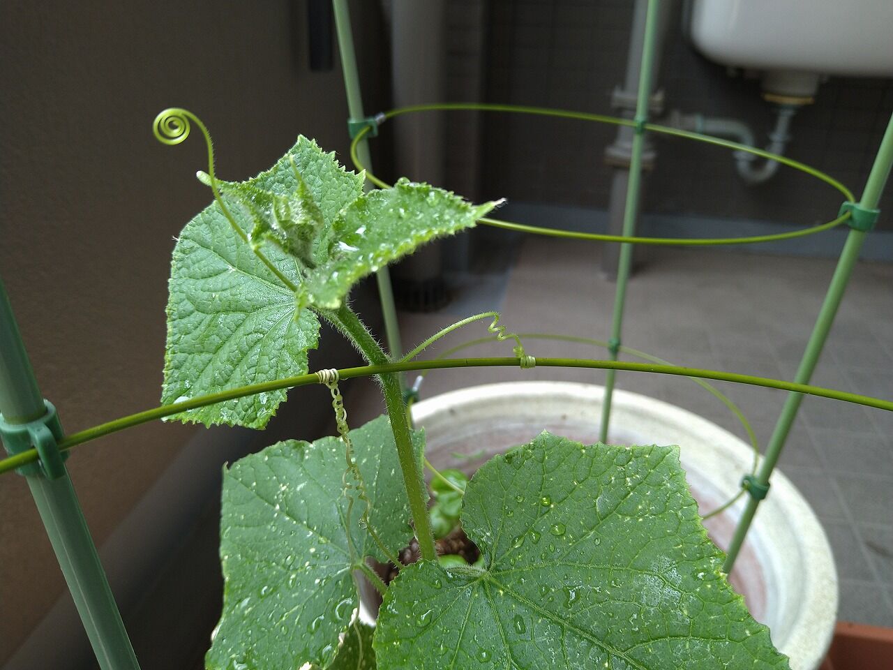キュウリちゃんはまた新たなツルがひとりでに巻いとる!