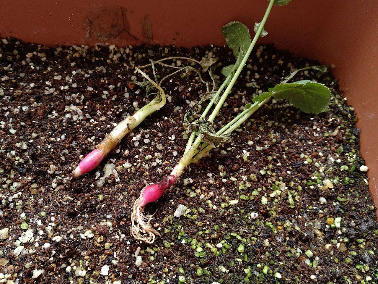 葉っぱが終わっちゃった二十日大根ちゃんを引っこ抜きました!
