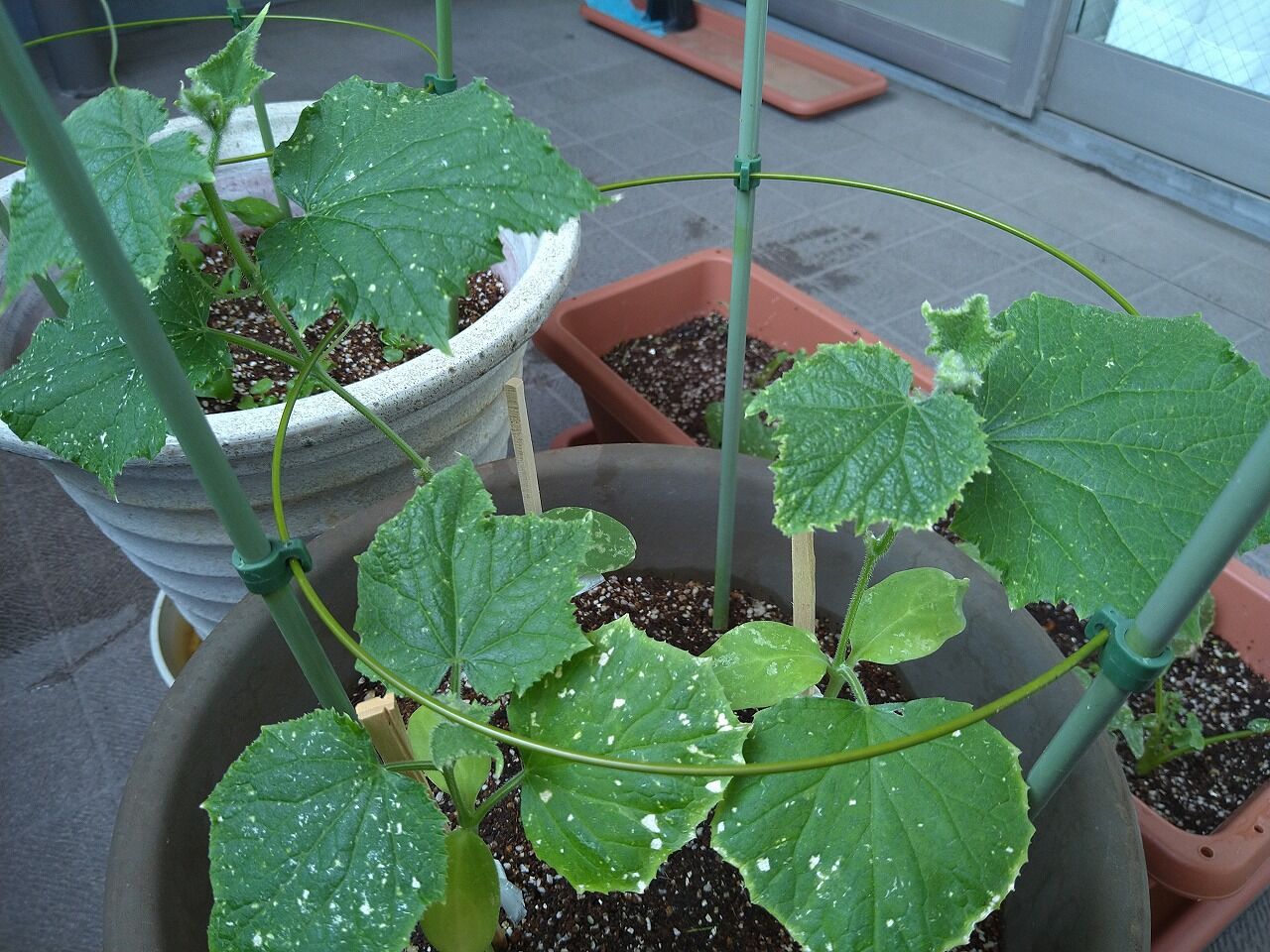 キュウリちゃんの葉っぱが随分大きくなってきましたね!